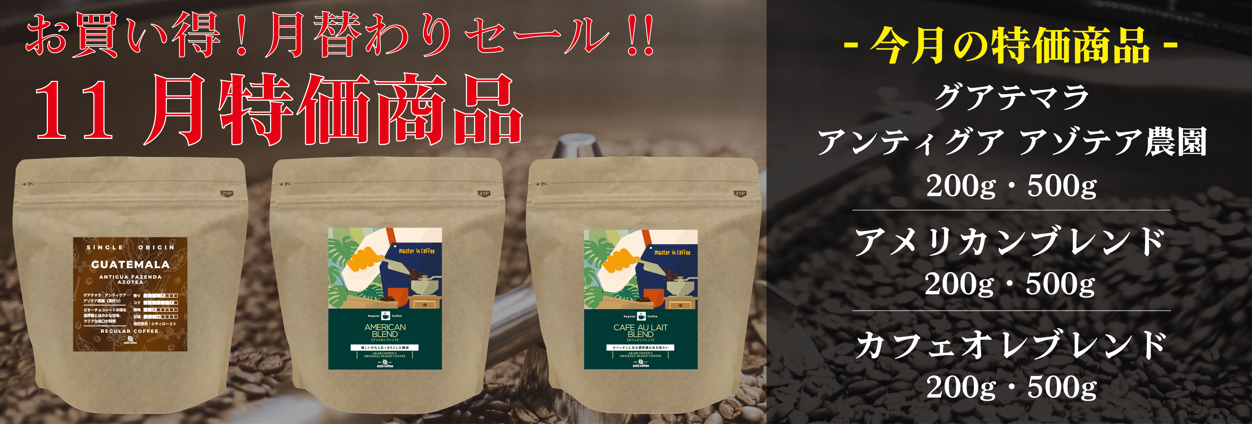 11月23日(日)〜11月25日(火) の3日間 コーヒー豆全品10%オフ!!